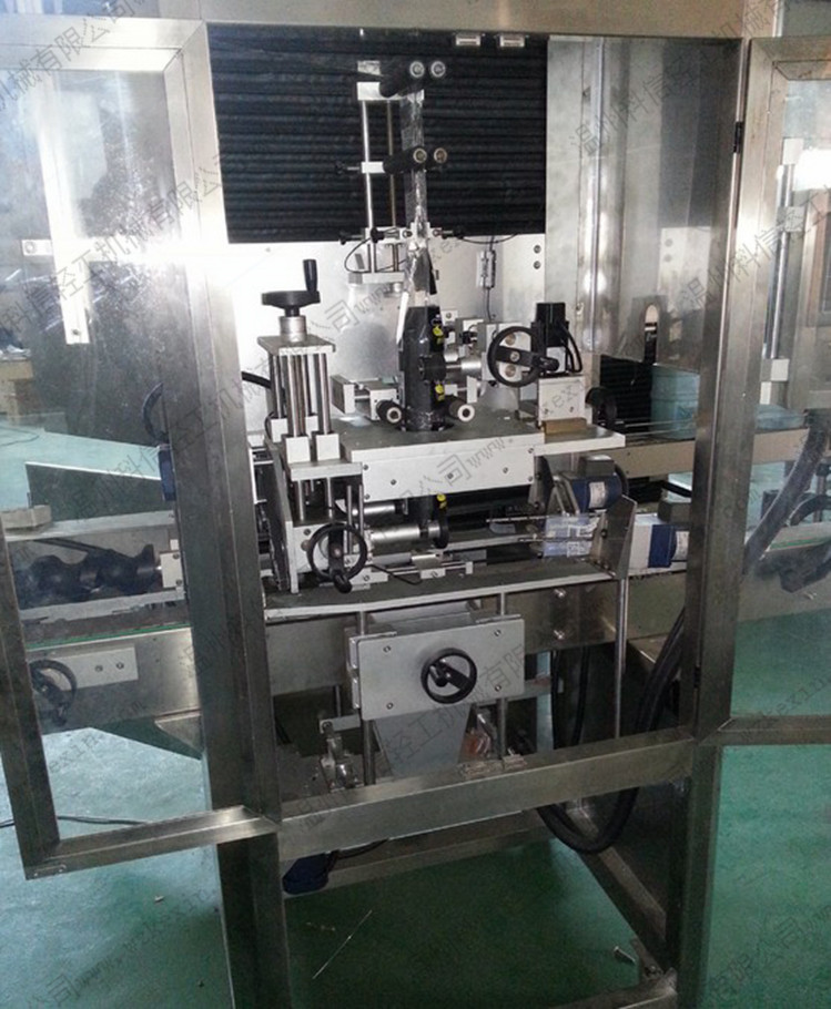 當推瓶電眼發(fā)現(xiàn)有瓶子過來并認為有連續(xù)生產(chǎn)之必要的時,進瓶螺桿開始運作推瓶(進瓶螺桿的作用就是將不等距而來的瓶子從新等距 等初速度分瓶),瓶子進入套標系統(tǒng)的核心單元,當套標電眼感應(yīng)到有瓶子過來,馬上將信息傳輸給控制中心 PLC ,并通過 PLC 依次、連續(xù)下達 4 個指令:送標、定位、切標、射標,當射標結(jié)束,一個瓶子的套標過程完成,之后進入標簽整理、收縮單元。
