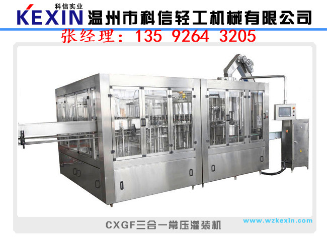 常壓灌裝機(jī):常壓灌裝機(jī)是在大氣壓力下靠液體自重進(jìn)行灌裝。這類灌裝機(jī)又分為定時(shí)灌裝和定容灌裝兩種,只適用于灌裝低粘度不含氣體的液體如牛奶、葡萄酒等。